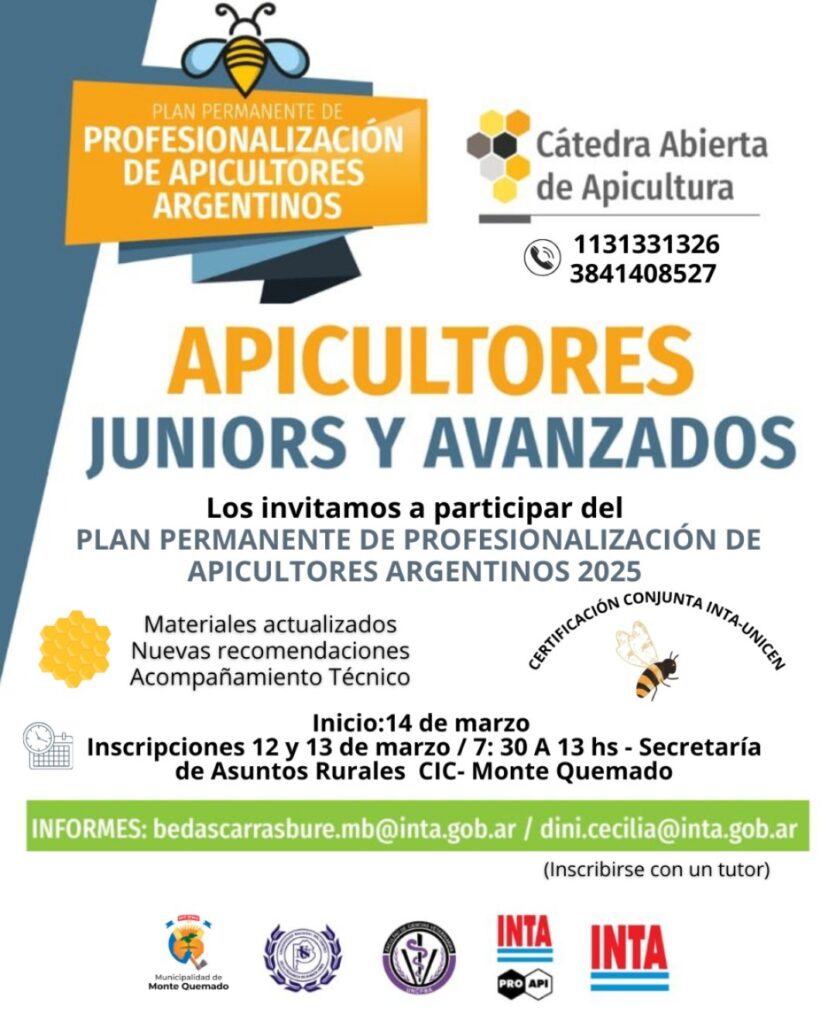 De manera articulada entre la Municipalidad de Monte Quemado y el Instituto Nacional de Tecnología Agropecuaria (INTA), se desarrollará el curso de Apicultura para principiantes y avanzados.