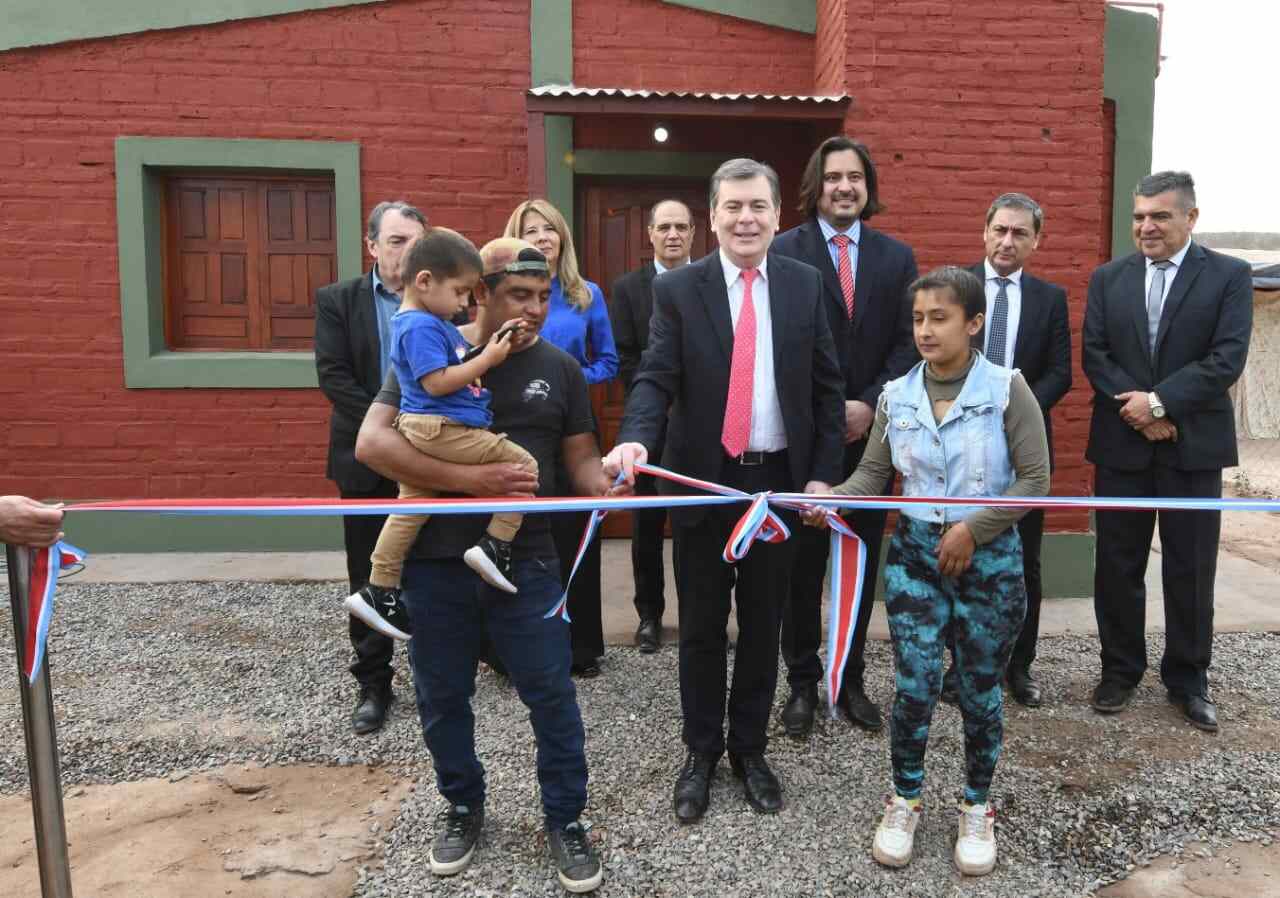 Luego se trasladaron al domicilio de María Celeste Garnica, en el barrio Aeropuerto de Monte Quemado, donde se realizó el corte de cintas y la entrega simbólica de llaves a la totalidad de los beneficiarios con viviendas sociales, las que fueron construidas con fondos aportados por la provincia a través del Ministerio de Desarrollo Social y con la colaboración del municipio local.