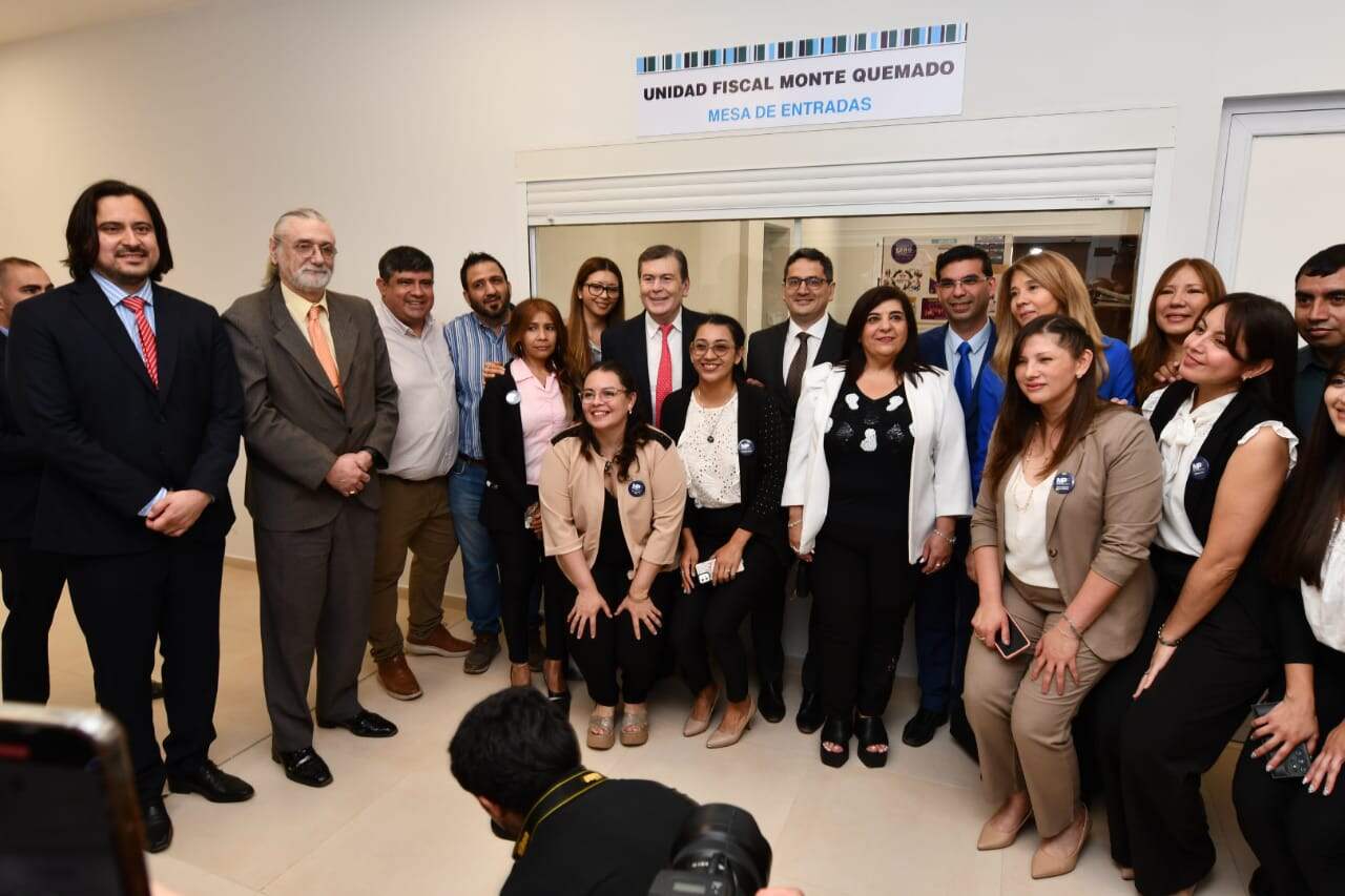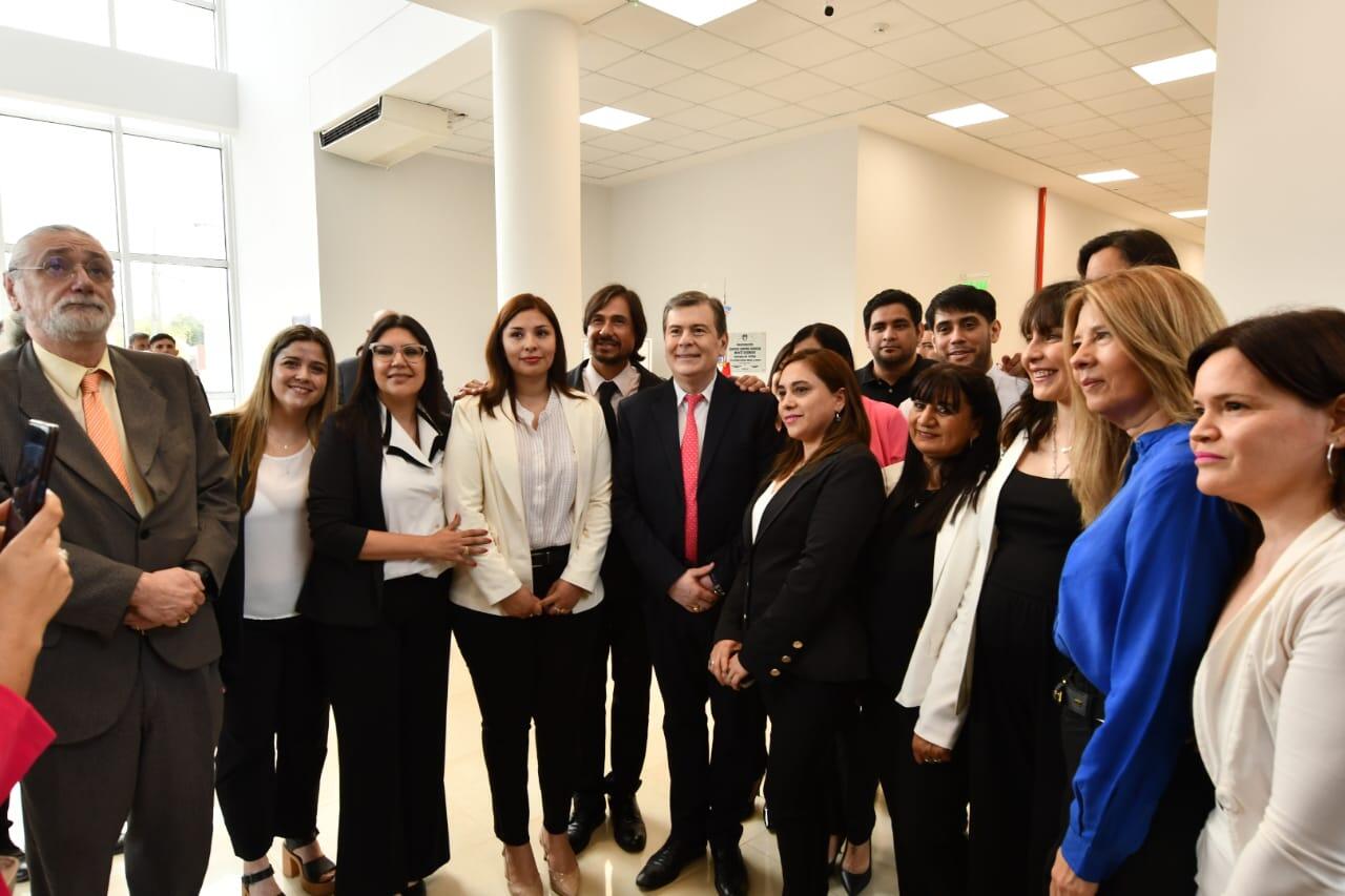 Posteriormente, la comitiva se trasladó al nuevo edificio del Centro Judicial, ubicado en la esquina de Belgrano y San Francisco Solano, con una superficie cubierta de 2.669 metros cuadrados. Cuenta con planta baja y dos pisos superiores donde se encuentran las salas de audiencias, despacho de jueces, relatoría, mesa de entradas, mediación, cámara Gesell y otras dependencias.