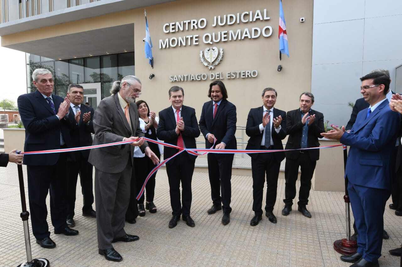 El gobernador Gerardo Zamora visitó este lunes la ciudad de Monte Quemado, cabecera del departamento Copo, en el marco de los festejos por sus 92 años, donde dejó inaugurado el edificio del Centro Judicial y la nueva Terminal de Ómnibus; también entregó 91 viviendas sociales y dejó habilitadas 20 cuadras de pavimento; un sistema de desagüe pluvial; el enripiado de 17 cuadras; una obra de reconversión lumínica y la residencia para médicos en el Hospital Zonal.