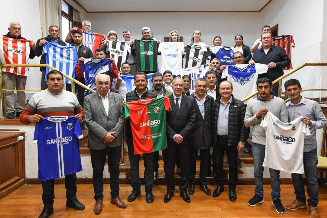 En representación del gobernador Gerardo Zamora, el jefe de Gabinete, Elías Suárez, hizo entrega de indumentaria deportiva y auspicio publicitario a los 16 clubes santiagueños que participarán en el Torneo Regional Federal Amateur de Fútbol.